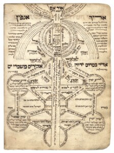 Copy of ʻEtz Ḥayyim by Ḥayyim ben Joseph Vital produced in 1729, richly decorated and including a fold-out ilan sewn at the back: the Ilan of Expanded Divine Names.